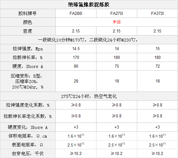 采用国内优质氟橡胶原胶,配以进口硫化剂、吸酸剂、补强剂、操作助剂等精炼而成。胶料具有优良的绝缘、耐热、耐油、耐酸碱等特性,经测试绝缘击穿电压>10.2千伏/毫米。